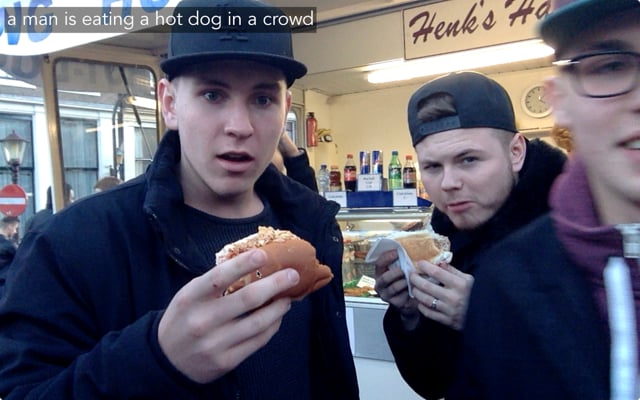 Andrej Karpathy’s Neural Talk is a neural network that learns to identify the objects in photos. Kyle McDonald modified the software to run in real time, i.e. to continuously guess what it’s “seeing” from a live video feed. It’s far from perfect, but it’s still impressive.