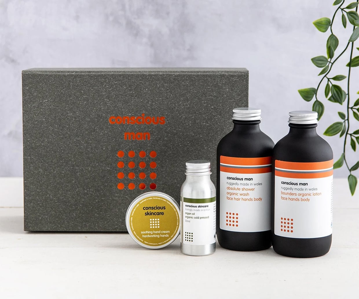 UK-based Conscious Skin Care makes this special gift set for men. Their premium grooming products combine spicy scents like bergamot, frankincense, and cinnamon. The set includes bottles of their 4-in-1 shower wash, 3-in-1 body lotion, argan oil for skin, hair, and beards, and a soothing hand cream for nourishing dry hands. Vegan, organic, and cruelty-free.