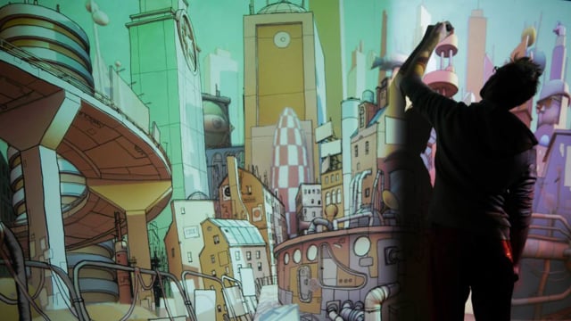 French studios Théoriz Crew and BKYC combined a large wall painting with projection mapped 3D animation and a Kinect to create a living, interactive mural. Read more about it on The Creators Project.