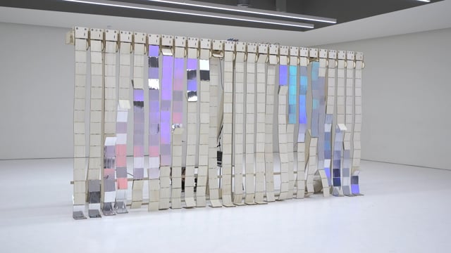 Artist Parker Heyl created this ingeniously simple but visually stunning installation work. Inspired by Jacob’s Ladder toys, it mechanically flips dozens of them with wood on one side and mirrors on the other to reflect colorful, ever-changing imagery. More here.