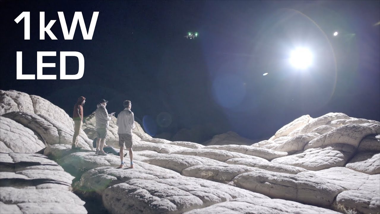 Rctestflight shows off some eyepopping desert aerial photography, the most impressive of which are the nighttime shots starting at 1:09. They used multiple drones – one to capture the imagery and another to provide illumination using a powerful 1kW LED light source.