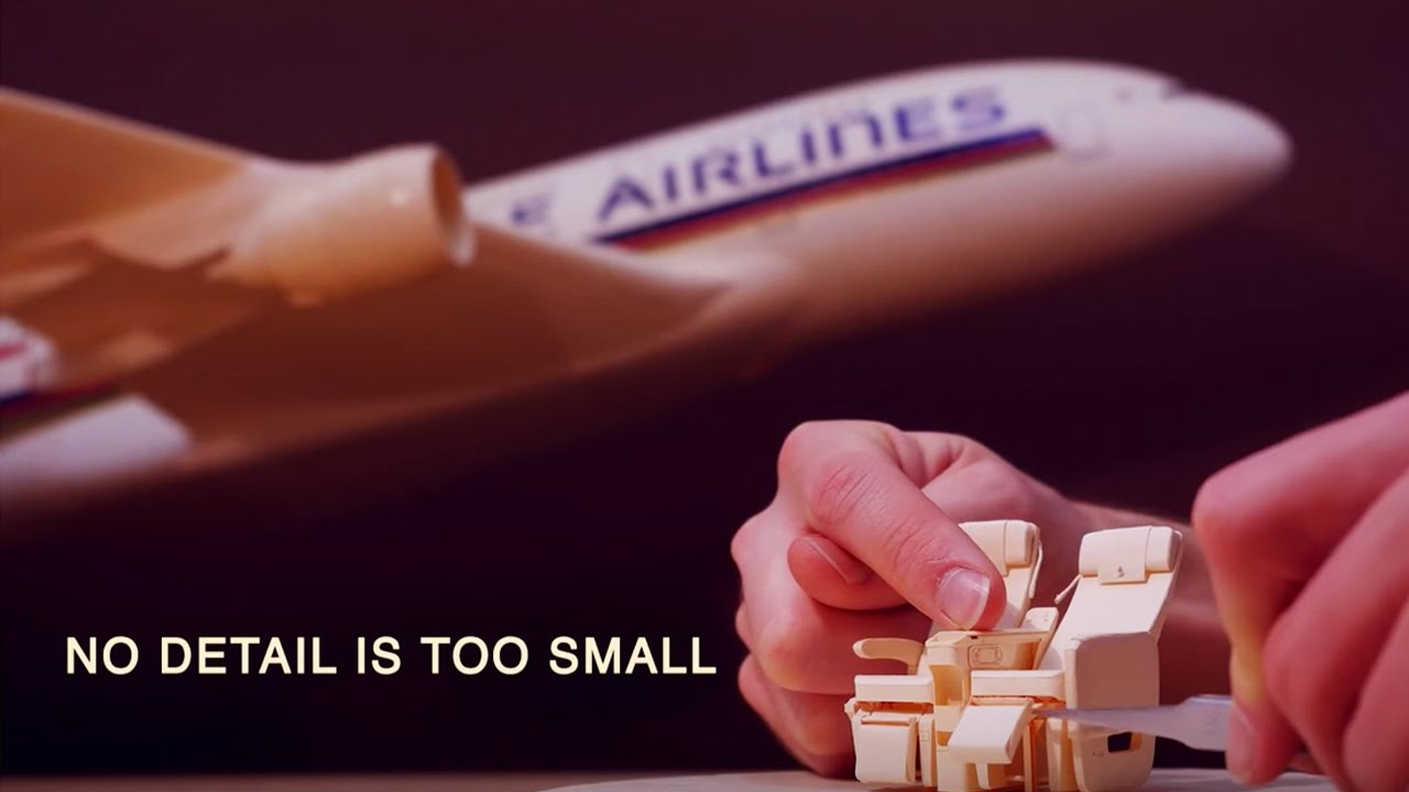 Last time we checked in with artist Luca Iaconi-Stewart, he was building an intricate paper model of a Boeing 777 out of manila folders. Here, he applies his same incredible knife and tweezer skills to craft a replica of a Singapore Airlines Airbus A380.