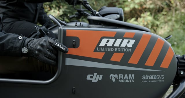 Ural’s limited edition Air motorcycle comes with a DJI Spark drone, which is housed in a 3D printed bin on the nose of the sidecar. The sidecar also has also a fixed mount for the drone’s remote control. The motorcycle is limited to 40 units.